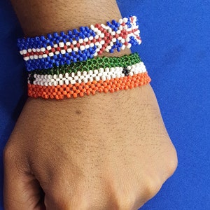 Only 1 available and its in 13. A simple and fashionable way to represent your country is to wear this bracelet. The patriotic bracelet is available in 2 designs.